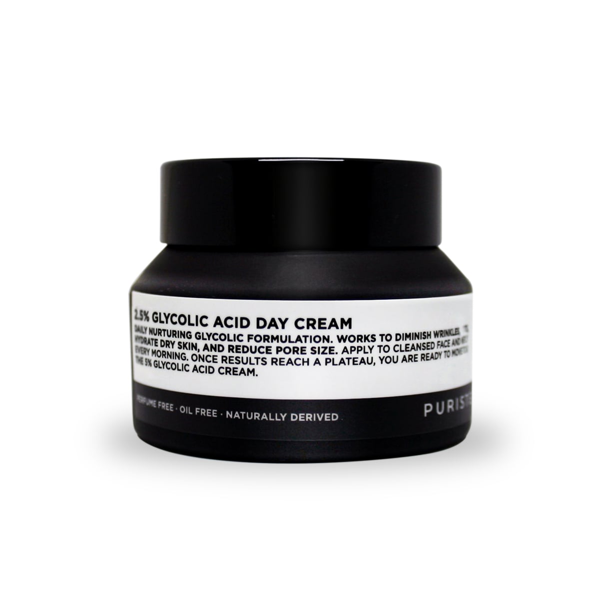 Optimal skin rejuvenation and restoration starts with our 2.5% glycolic acid day cream. The first step of the Puriste glycolic acid stepwise system, this daily formulation works to diminish the appearance of wrinkles, restore skin firmness, brighten skin tone, reduce pore size, and stimulate new fresh cells through the power of its key ingredient, unbuffered pharmaceutical-grade glycolic acid. The acid also provides gentle exfoliation which allows for the nourishing, vitamin-rich botanicals found in this product to deeply penetrate the lower layers of fresh skin.